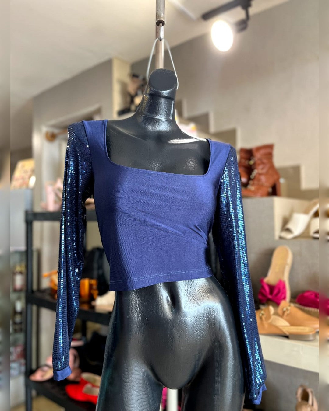 BLUSA AZUL CON MANGAS DE LENTEJUELAS