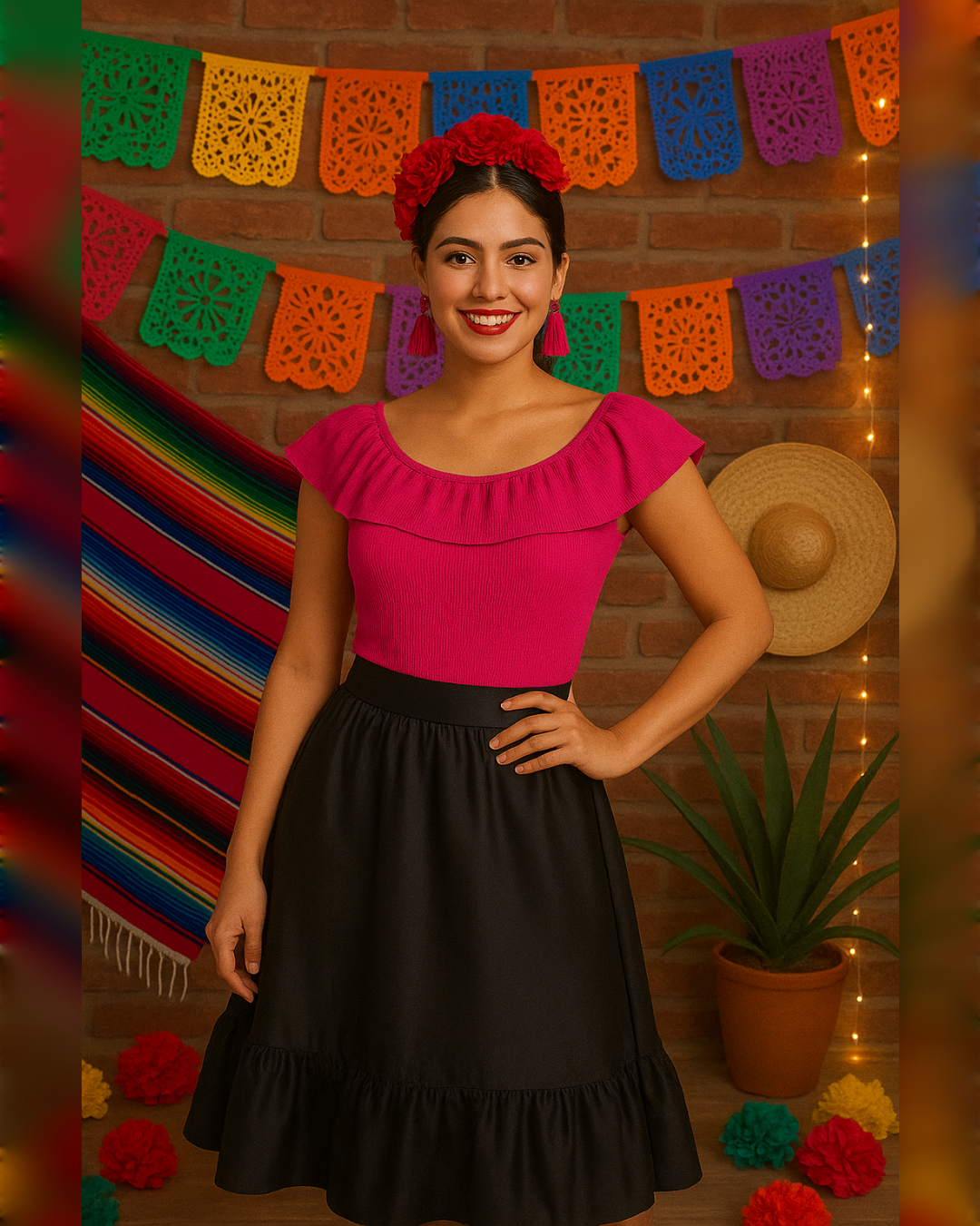 BLUSA CAMPESINA ROSA MEXICANO IDEAL PARA LA NOCHE MEXICANA