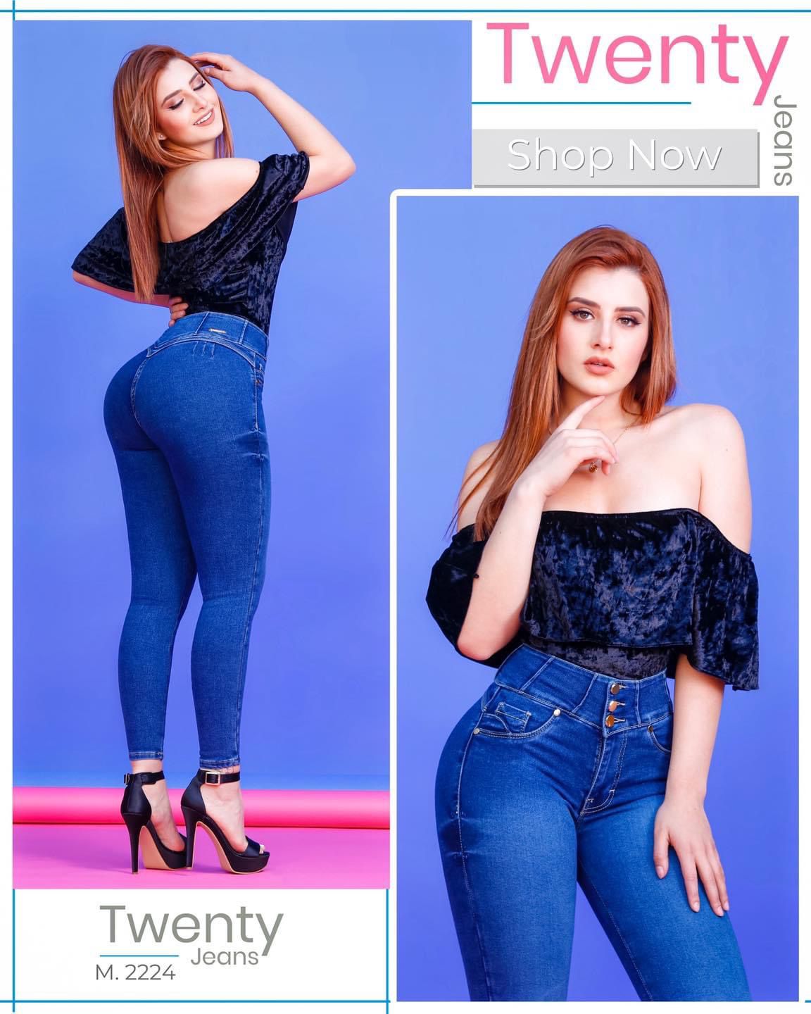 PANTALÓN DE MEZCLILLA STRETCH CORTE COLOMBIANO CON PRETINA ANCHA Y 3 BOTONES TWENTY 2224