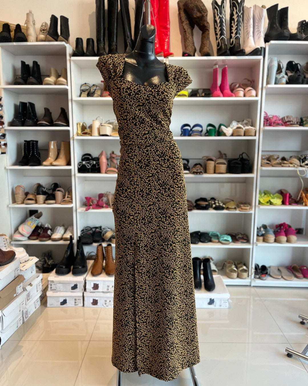 VESTIDO LARGO NEGRO CON DORADO