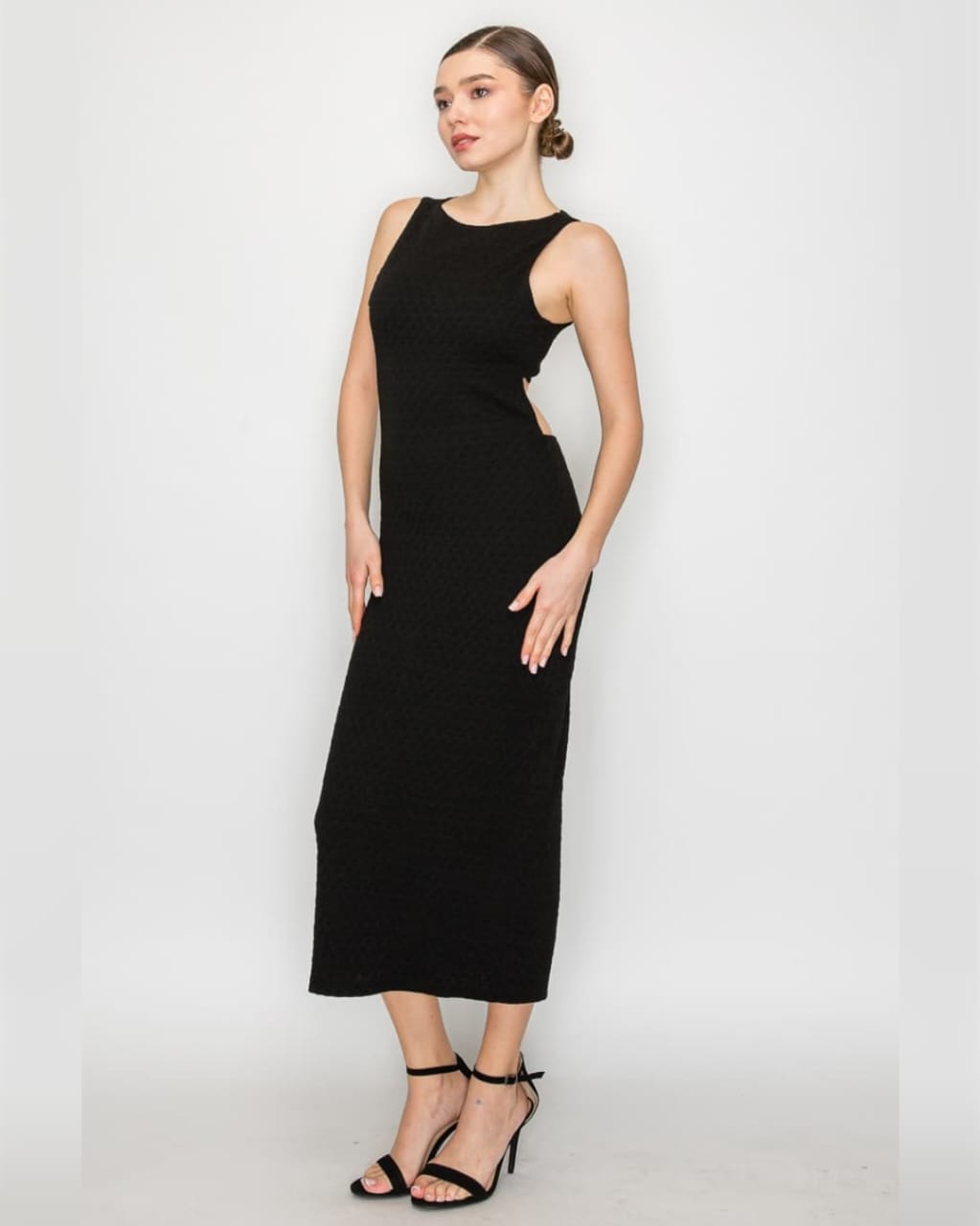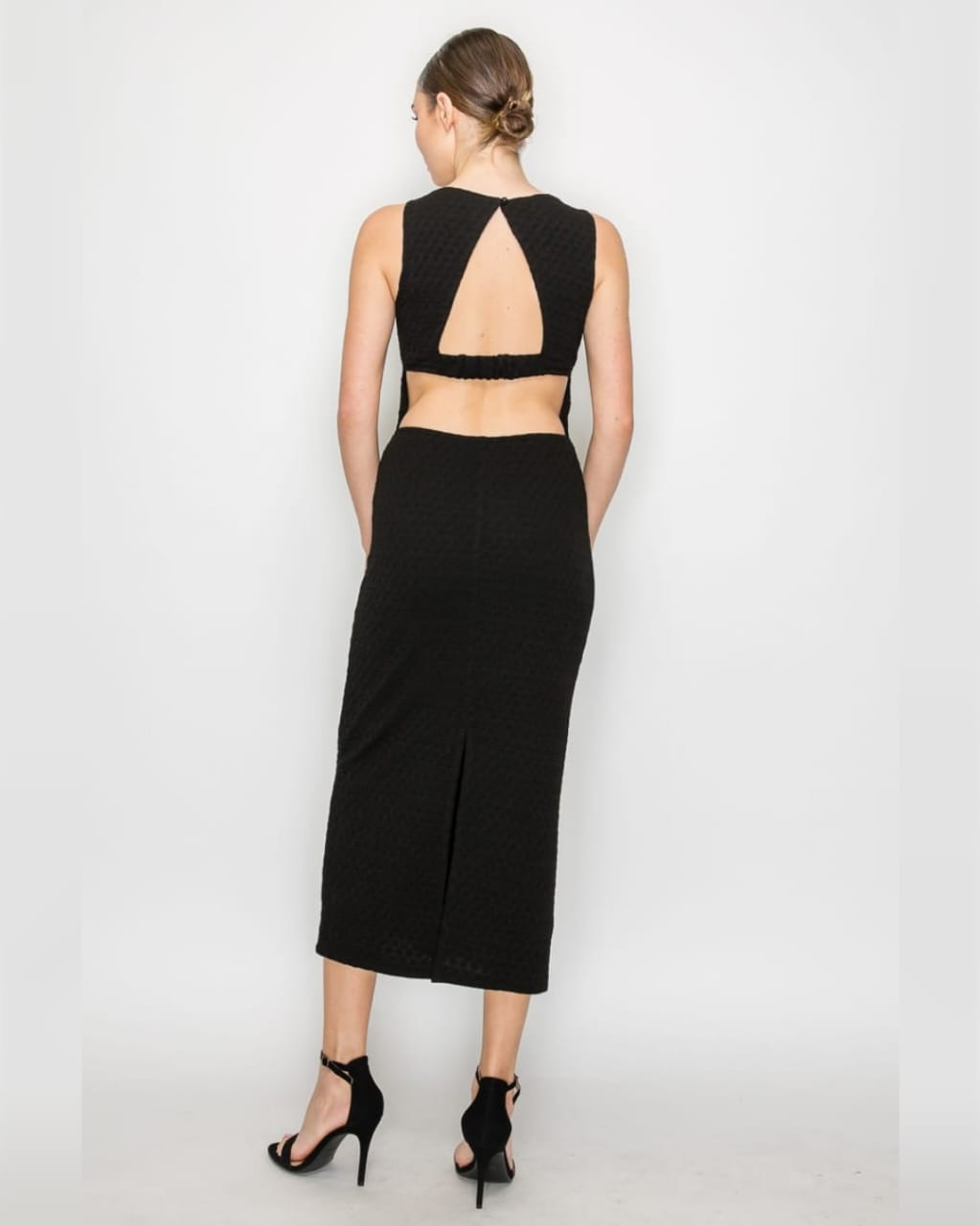 VESTIDO NEGRO MIDI CON ESPALDA SEMI DESCUBIERTA ID5865